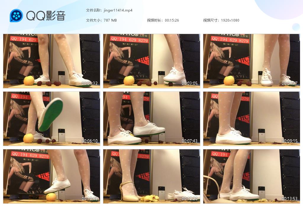 婧児小主白色运动鞋全体重踩踏水果 |